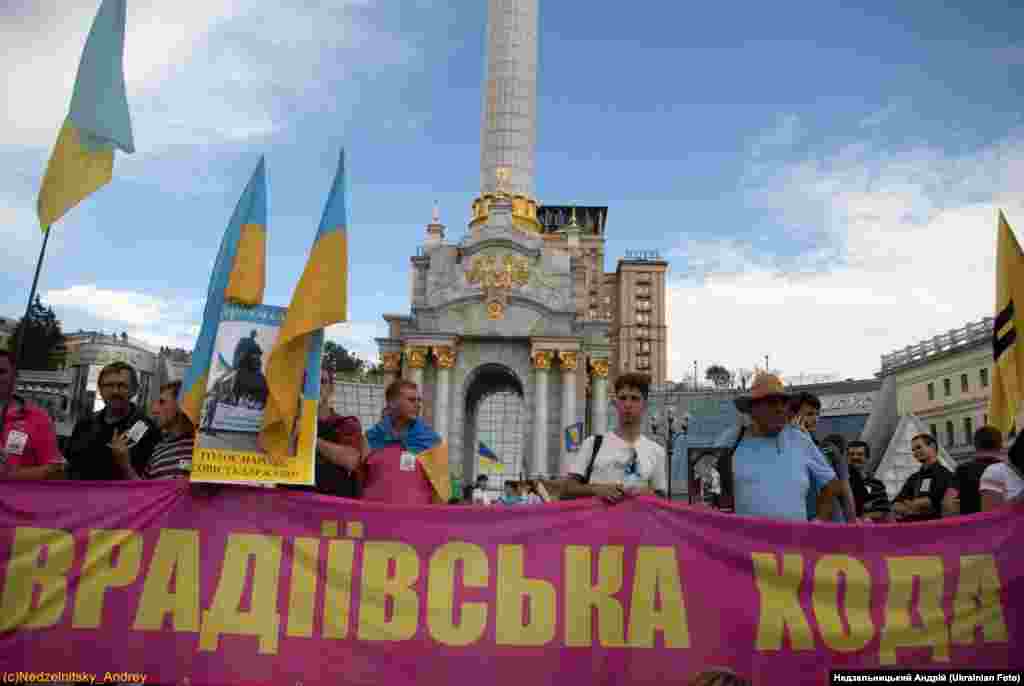 "Врадіївська хода" дійшла до Майдану о 18-й вечора у четвер. Вночі "Беркут" розігнав мітинг, але до цього були гасла. Фотографії : Андрій Недзельницький