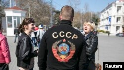 «Нас лякають, що Крим буде резервацією, як Абхазія або Придністров'ї. Але ми віримо, що Крим стане маленькою Італією, що Росія нам допоможе, а потім ми налагодимо відносини і з українським урядом. <...> Зараз у Києві фашизм. Я хочу , щоб там був мир , у мене там живуть діти й онуки , а тут - ми за Росію » , - підкреслює Катерина Ляліна . Її слова підтримують ті, хто зібрався біля пам'ятника Нахімову на мітинг на підтримку референдуму про статус Криму.