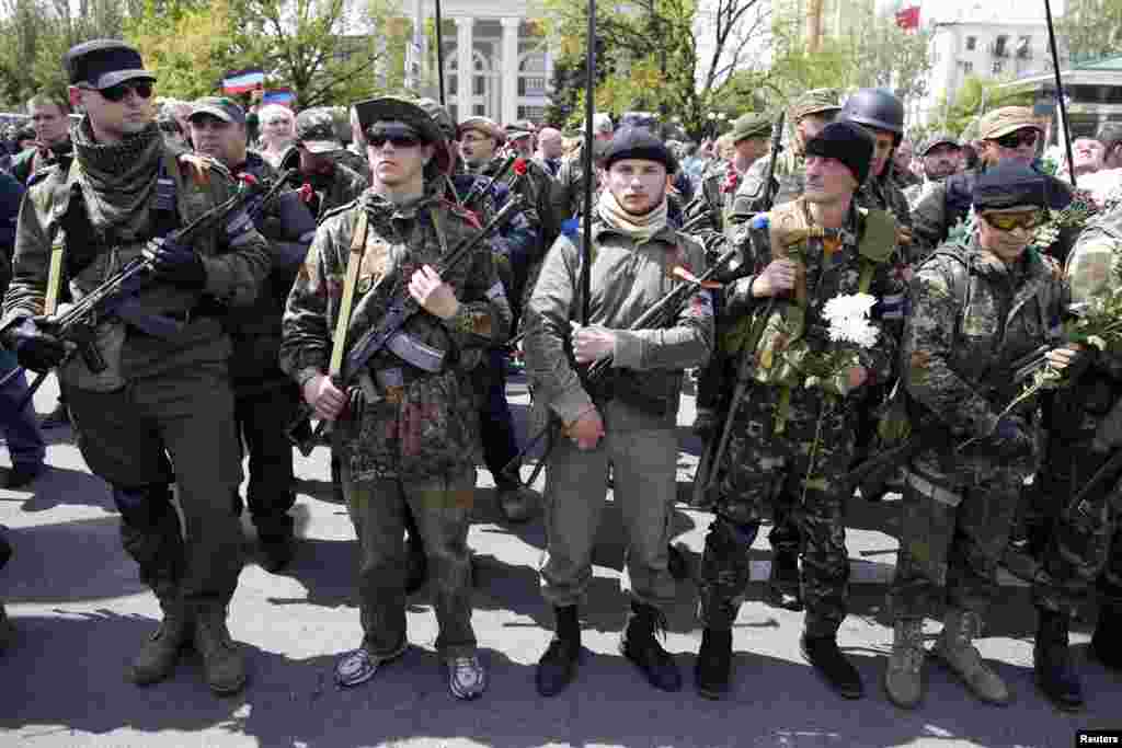 Святкування Дня Перемоги у Донецьку позначилось широкою участю добре озброєних бойовиків-сепаратистів.