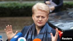 Президент Литви Далія Грібаускайте в інтерв’ю CNN заявила, що сьогодні Європа переживає «тест на лідерство». Країни НАТО повинні дуже серйозно підійти до небезпеки, яку складає путінська Росія. За її словами, країни Європи повинні серйозно поставитись до своєї оборони і, незважаючи на економічну кризу, почати вкладати серйозні кошти у свою оборону. «Час відтягувати ці рішення вичерпаний», - зазначила президент Литви.