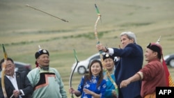Ключовим моментом візиту Керрі стало його поява на традиційних монгольських змаганнях Надом, які включають скачки, боротьбу і стрільбу з лука. Поява держсекретаря США на святі було направлено на розвиток культурних зв'язків з Монголією. Керрі спробував свої сили у стрільбі з лука та поговорив з переможцем змагань по боротьбі, після чого попрямував до Китаю.