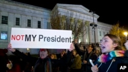 Тисячі американців, які не можуть змиритися із перемогою Дональда Трампа, протестують по всій країні. Серед них як представники меншин, які не забули образи тоді ще кандидата Трампа, так і американці, нажахані ідеями кампанії республіканця. Втім, мешканців деяких міст лякають і самі протести, які переступили межі мирних зібрань.