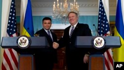 Відкриваючи спільну прес-конференцію з міністром закордонних справ України Павлом Клімкіним у США 16 листопада, Майк Помпео відзначив волелюбний дух, який веде українців у боротьбі за суверенітет та територіальну цілісність своєї країни: "Цей дух, сміливість та рішучість ведуть Україну в її боротьбі у відстоюванні національного суверенітету та територіальної цілісності перед обличчям російської агресії. В цьому Україна не має більшого друга ніж Сполучені Штати. Як ми чітко заявили в Кримській декларації минулого літа, Сполучені Штати ніколи не визнають російську спробу анексії Криму. Ми будемо продовжувати політику тиску на Росію до тих пір, поки Москва повністю не виконає умови Мінських угод та не поверне Україні контроль над Кримом", - наголосив посадовець