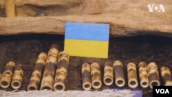 - Це національний прапор України. Я його тут виставляю, щоб нагадувати людям, що Україна зараз воює за своє існування з Росією. Війна там триває вже з 2014 року. І понад 10 тисяч українців вже загинули в цій війні. У нас в Америці про це дуже мало повідомляють. Ви про це чули раніше ?