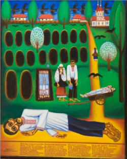 На її картинах – історія її власної родини, каже вона. “На моїх картинах конкретно мій дід і баба. Баба Марфа і дід Микола. Вони обоє померли, хоч на хуторі мали і садок красивий, і все інше. Але в них все забрали, нічого не залишили. Я звичайно бабу свою не пам’ятаю, бо вона в голодовку померла. Тільки мама мені за неї розповідала”, - продовжує свою розповідь художниця.