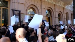 «Ганьба! Ганьба!» - такими вигуками українські працівники ЗМІ, які зібралися біля комітетів Верховної ради розпочали протест проти прийняття закону про наклеп. Учасники акції тримали білі листки паперу, як алегоричний символ - якщо закон буде прийнято, то всім доведеться виходити з порожніми за змістом шпальтами тому, що ніхто не зможе собі дозволити говорити правду та критикувати владу. Журналісти та редактори, які виступали під час мітингу, пояснювали, що під законом про наклеп прихований закон про цензуру.