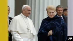 В аеропорту Вільнюса Папу Римського зустрічала президент Литви Далія Грибаускайте. Урочистості привітанню додав військовий духовий оркестр.