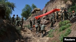 У районі стихійного лиха працюють солдати, поліція і медичний персонал у пошуках жертв і надання допомоги тим, що вижили.