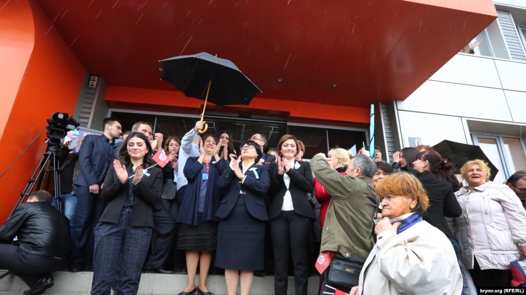 Поряд з нею стоїть дівчина, якій на вигляд 17-18 років, на її очах сльози. Вона не бажає вірити в те, що з 1 квітня телеканали ATR, Lale, радіостанції «Мейдан» і «Лідер» припинять своє мовлення.