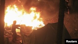 Демонстранти жбурляли в поліцію запалювальні бомби і каміння, яка відповідала сльозогінним газом і підпалами деяких наметів на площі.