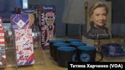 У час, коли американські кандидати на президентське крісло змагаються в красномовності, бізнесмени заробляють гроші на сувенірній продукції, присвяченій цьогорічним президентським виборам у США.