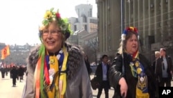 Москвичка Катерина, в українській вишиванці, нещодавно повернулася з Майдану Незалежності в Києві. Вона гостро висловилася на адресу ЗМІ в Росії.