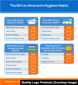 Чверть американців миються лише раз на 3 дні, кожен десятий житель США не змінює постіль частіше, ніж раз на два місяці, а 4% американців носять ту саму спідню білизну по 4 дні й довше.