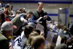 Майже 700 людей зібралося на демократичний кокус у школі імені Рузвельта, що в місті Де-Мойн, штат Айова. За головну тут на партійних виборах – директорка спілки вчителів Мері Джейн Кобб.