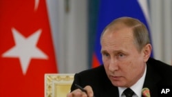 У ході прес-конференції у середу у Вірменії Путін заявив, що Росія не залишить без уваги загибель двох російських силовиків та відзначив, що акція, яку Москва припусує Києву, була покликана "відволікти увагу власного народу від жалюгідного стану економіки, від жалюгідного становища значної кількості громадян своєї країни". З повним текстом прес-конференції Путіна можна ознайомитись на офіційному сайті Кремля.