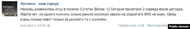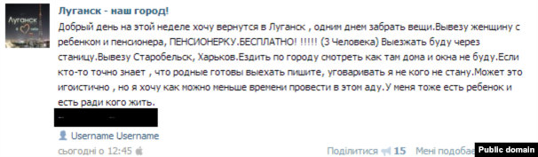 Денис, редактор луганського сайту «Інформатор» (який попросив не називати прізвища з міркувань безпеки), розповів Радіо Свобода, що виїхати реально, але гарантій безпеки охочим залишити місто ніхто не дає. «Це зараз дуже небезпечно, на свій страх і ризик. Є такі перевізники-шибайголови, які вивозять», – зазначив він.