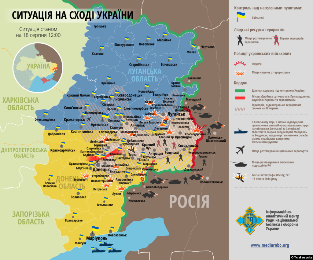 Рада нацбезпеки й оборони досі не знає, скільки людей загинуло внаслідок обстрілу колони з цивільних на Луганщині. У Києві кажуть про ймовірні «десятки жертв» і просять не оприлюднювати відео з місця події, бо воно «жахливе». Тим часом та територія Донбасу, яку контролюють проросійські бойовики, і далі потерпає від гуманітарної кризи. У Донецьку немає води, у Луганську і далі відсутні світло, газ і зв’язок.