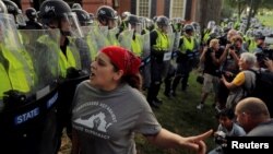 Влада надіслала до студентського містечка Університету Вірджинії велику кількість поліцейський та охоронців, аби забезпечити мир та порядок, однак у демонстрантів це викликало гнів.