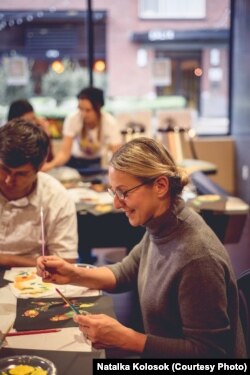 Марина не тільки навчає, як користуватися пензлями і фарбами, але й своєю креативністю: