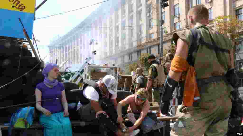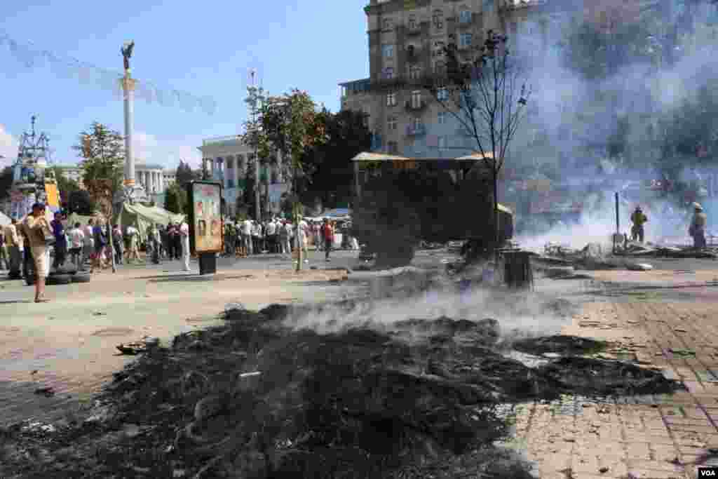 У четвер комунальники спробували прибрати барикади на Хрещатику. "Майданівці" чинили спротив. Пізніше силовики повідомили про вилучення на Майдані зброї.