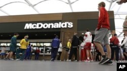 Для спорудження найбільшого за площею та кількістю відвідувачів ресторану мережі «McDonald's» у світі знадобилося лише півтори місяця. Двоповерховий заклад швидкого харчування здатний розмістити за столами півтори тисячі людей, і його стільці ніколи не пустують. Підкріпитись у перервах між іграми сюди приходять тисячі клієнтів. У найбільш напружений час персонал обслуговує до тисячі осіб за годину.