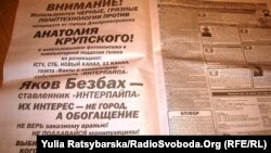 «Приміром, газета «Зоря», яка фінансується з обласного бюджету, №39 за 27 вересня. Тут друга сторінка повністю присвячена кандидату Анатолію Крупському та його заслугам. А сторінка №3 – присвячена його конкуренту Якову Безбаху. Тут розміщений відкритий лист заслуженого металурга України, що несе негативний характер. Ми вбачаємо в цьому ознаки «чорного піару», – повідомила Радіо Свобода представник «Опори» у Дніпропетровську Ольга Солодушко.