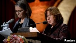 На завершення виступу Алексієвич подякувала Шведській академії і присутнім словами «дякую за ваші серця, за те, що ви почули нашу біль».