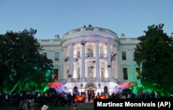Грала лячна музика, устаткування виробляло штучний туман. Ґанок прикрашали гарбузи, вирізьблені у вигляді колишніх президентів. Чорні павуки звисали з колон портика. Над навісом звисав напис «Гелловін в Білому домі 2017».
