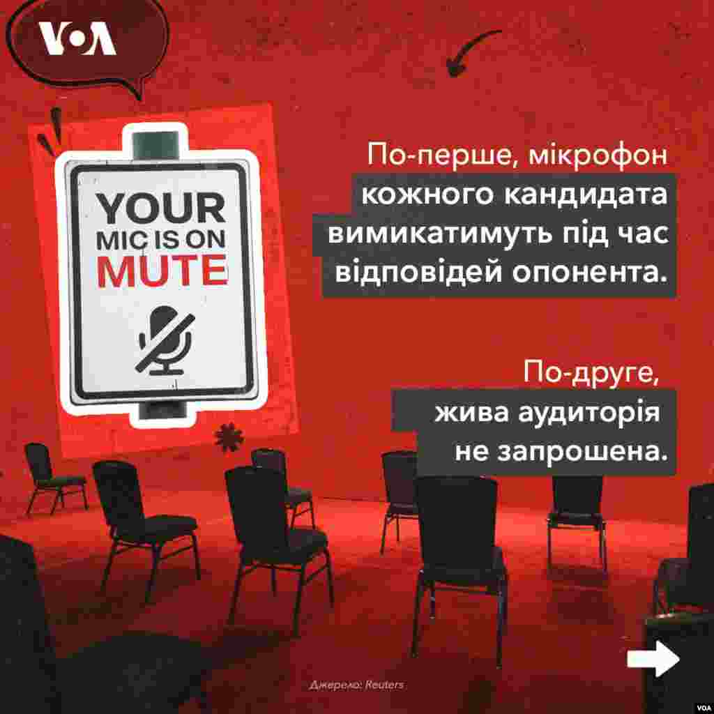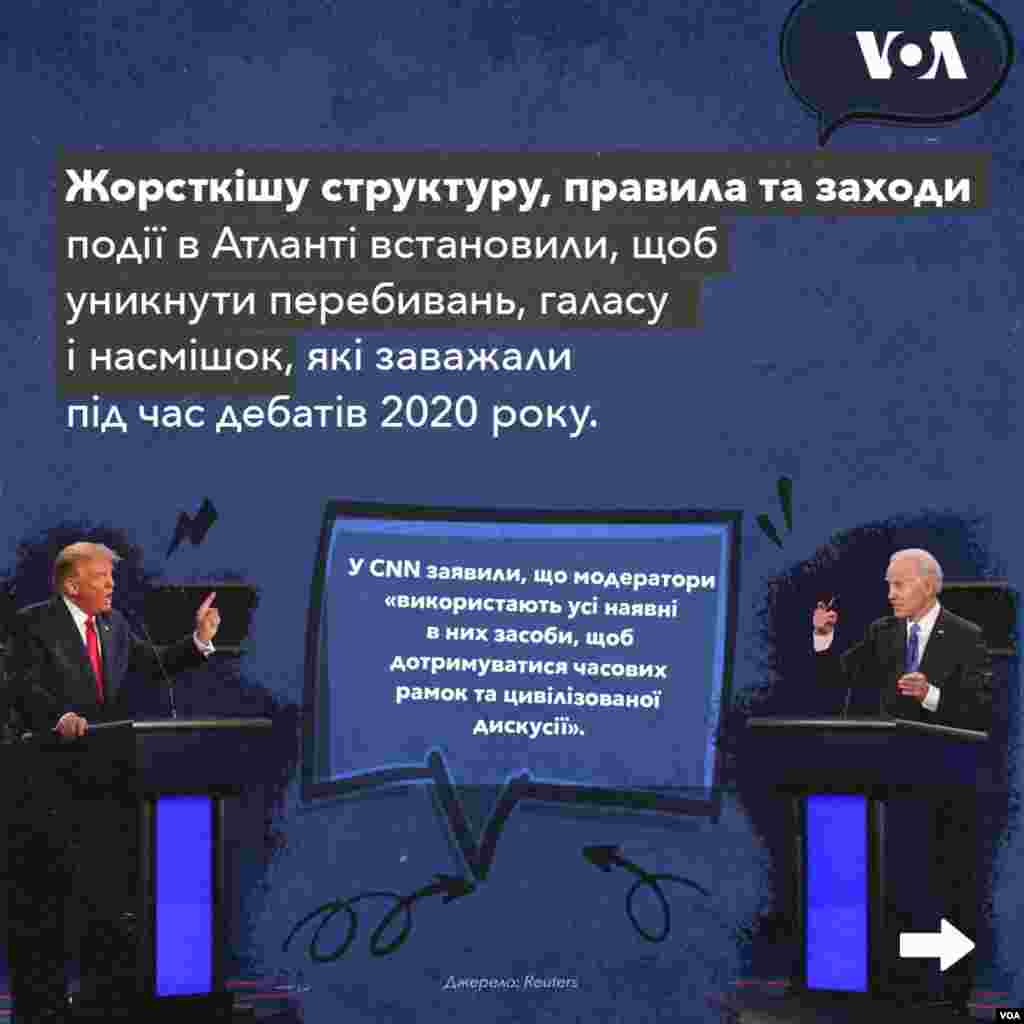 На перші дебати кандидати зберуться в Атланті. Правила зустрічі будуть суворішими, ніж у 2020 році — учасники не зможуть перебивати одне одного і будуть змушені дотримуватися цивілізованої дискусії.