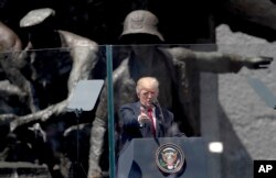Виступ Трампа відбувся на площі Красінських на фоні пам’ятника Варшавському повстанню 1944 року, зведеному на честь сотень тисяч польських військових та цивільних громадян, які загинули під час повстання проти нацистів, яке тривало два місяці.