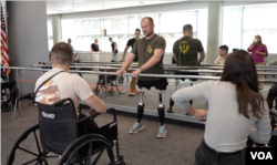 "Я люблю життя, таке відчуття, що я хочу жити, я хочу рухатись постійно. Руки в мене, слава Богу, є, і я ще можу бути корисним, скажімо, для війська, тому що це можна навіть робити дистанційно. Не обов'язково бути на передовій", - розповідає Голосу Америки військовослужбовець, який перебуває на протезуванні в Міннесоті.