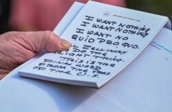 Він процитував свою розмову з послом Сондлендом, відомості про яку фігурували під час слухань. Під час розмови з Сондлендом у відповідь на питання посла про те, що президент хоче від України, президент Трамп відповів: "Я нічого не хочу. Не хочу жодних quid pro quo. Скажіть Зеленському, щоб він зробив вірно", - зачитав свої слова Дональд Трамп з нотатки.