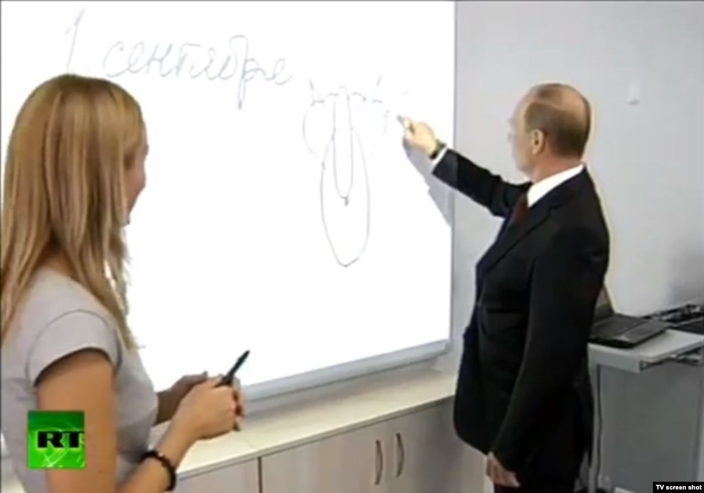 У вересні 2013 року Путін здивував країну малюнком на шкільній дошці, тепер відомим як «Кішка. Вигляд ззаду». Багато росіян визнали, що так він показав свою креативну, дитячу сторону. Але не всі.