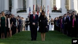 У момент, коли перший літак врізався в одну з веж-близнюків Всесвітнього торговельного центру в Нью-Йорку президент Трамп з дружиною Меланією провели хвилину мовчання в Білому домі в пам'ять про майже 3 000 людей, які загинули від рук терористів.