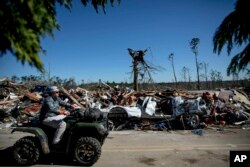 Торнадо зніс будинки на колесах, розміщені серед високих соснових дерев, і розбив їх у невпізнавані груди уламків. Іграшки, одяг, ізоляція, водонагрівачі та шматки металу розкидало по схилах, де дерева були розсічені навпіл.