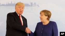 "Президент США Дональд Трамп сьогодні зустрівся у Гамбурзі з канцлером Німеччини Анґелою Меркель, щоб скоординувати позиції по ключовим питанням напередодні саміту «Великої 20-ки» у п’ятницю. Лідери обговорили низку спільних пріоритетів у царині закордонної політики та безпеки, включно із поновленням виконання Мінських угод, деескалації конфлікту між Катаром та деякими його сусідами у Перській затоці та ядерного роззброєння на Корейському півострові", - йдеться в оприлюдненій Білим домом заяві.