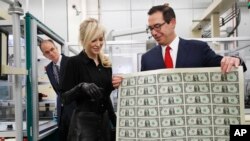 Міністру фінансів США Стівену Мнучіну та його дружині Луізі Лінтон не пробачили позування із свіженадрукованими доларовими банконотами у ході відвідин монетного двору США.