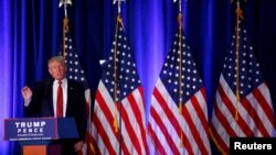У ній він акцентував увагу на боротьбі із радикальним ісламським екстремізмом, пообіцяв обмежити доступ до США осіб, які не поділяють американські цінності, повернутись до політики американізму та анонсував можливість спільних військових дій з Росією у Сирії проти терористичного угрупування "Ісламська держава".