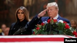 Президент Дональд Трамп та перша леді Меланія Трамп відвідали у понеділок ввечері Капітолій США, щоб вшанувати пам'ять колишнього президента Джорджа Г. В. Буша, який помер минулої п'ятниці у віці 94 років.