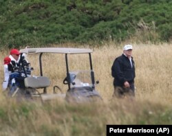 Після зустрічі з королевою у замку Віндзор Трамп попрямував до Шотландії, де народилася його мати, Мері Енн, і де він володіє полем для гольфу, перед своєю понеділковою зустріччю в Гельсінкі з Путіним.