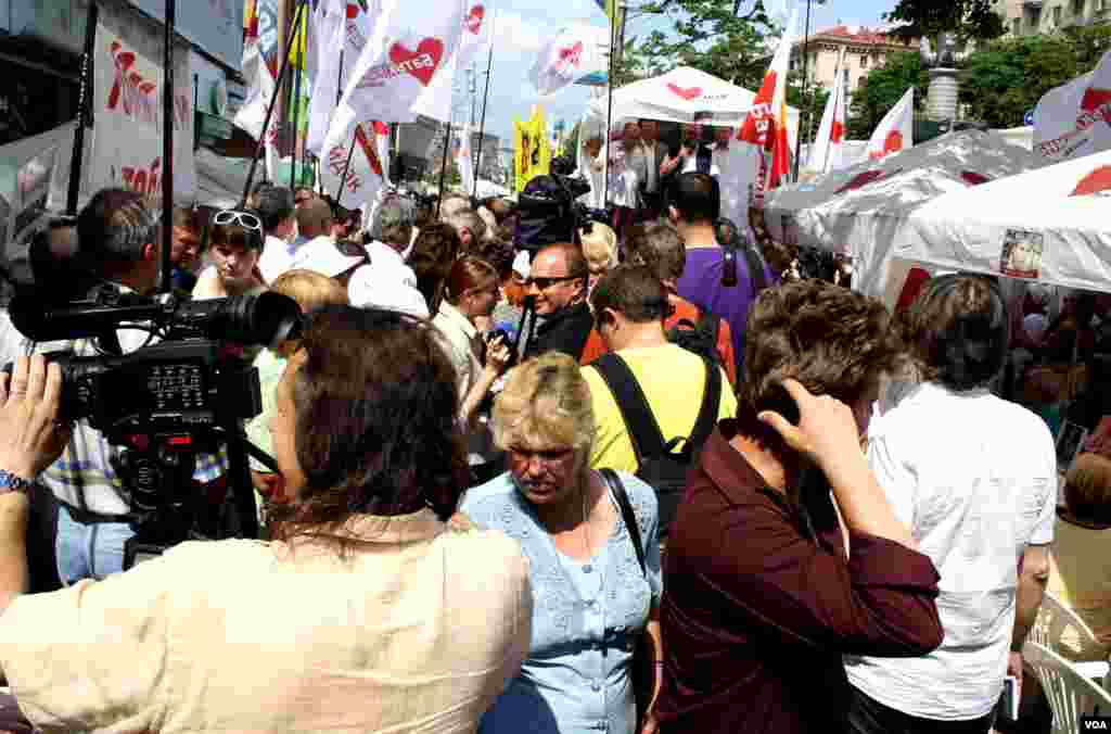 На мітингу з нагоди відзначення 300 днів ув’язнення Юлії Тимошенко, який пройшов у наметовому містечку в українській столиці, найголосніше лунали емоційні звинувачення влади та заклики на підтримку колишньої прем’єр-міністра. Проте, цього разу на події було помітно більше ніж завжди представників іноземних медіа.