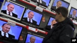 Російські ЗМІ схильні висвітлювати події з позиції Кремля, стверджуючи, що зміщення промосковського президента України Віктора Януковича в лютому було справою рук фашистської «хунти», а сепаратистські заколоти є результатом несправедливої політики і військових дій Києва щодо російськомовного населення.