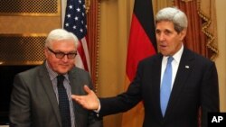 У середу Керрі зустрівся зі своїм німецьким колегою, міністром закордонних справ Франком-Вальтером Штайнмаєром, який прибув до Вашингтона з триденним візитом. На порядку денному переговорів - реакції НАТО на кризу в Україні, ситуація з Іраном та інші актуальні міжнародні проблеми.