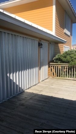 Леся Зінчук з чоловіком Андрієм Гнатовим забили дошками вікна у своєму будиночку на узбережжі, який входить до зони евакуації.