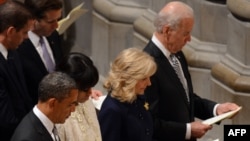 У вівторок - через день після інавгураційних урочистостей - президент Барак Обама і віце-президент Джозеф Байден разом з дружинами прибули до Національного собору Вашингтона для участі в екуменічному молебні.