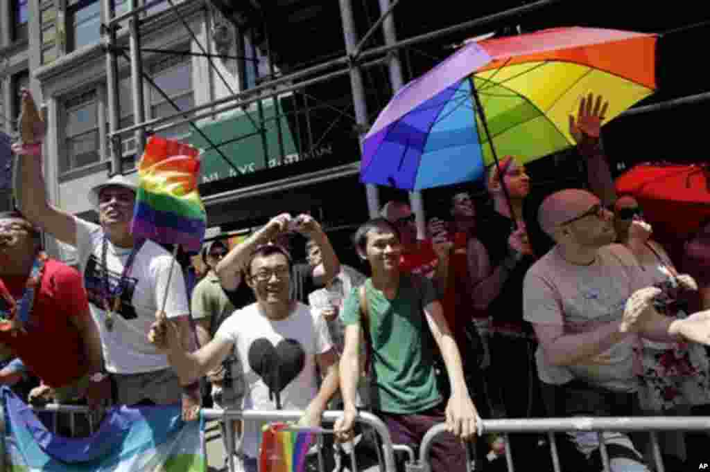 Масовий марш був присвячений першій річниці легалізації одностатевих шлюбів у штаті Нью-Йорк. За минулий рік геї також отримали право відкрито служити у збройних силах США.