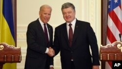 У команді 44-го президента США Барака Обами Байден координує співпрацю з Україною. Він регулярно в телефонному режимі обговорює з президентом України Петром Порошенком стан виконання мінських домовленостей, санкції, запроваджені Заходом проти Росії через її дії в Україні, економічні й політичні реформи в Україні.