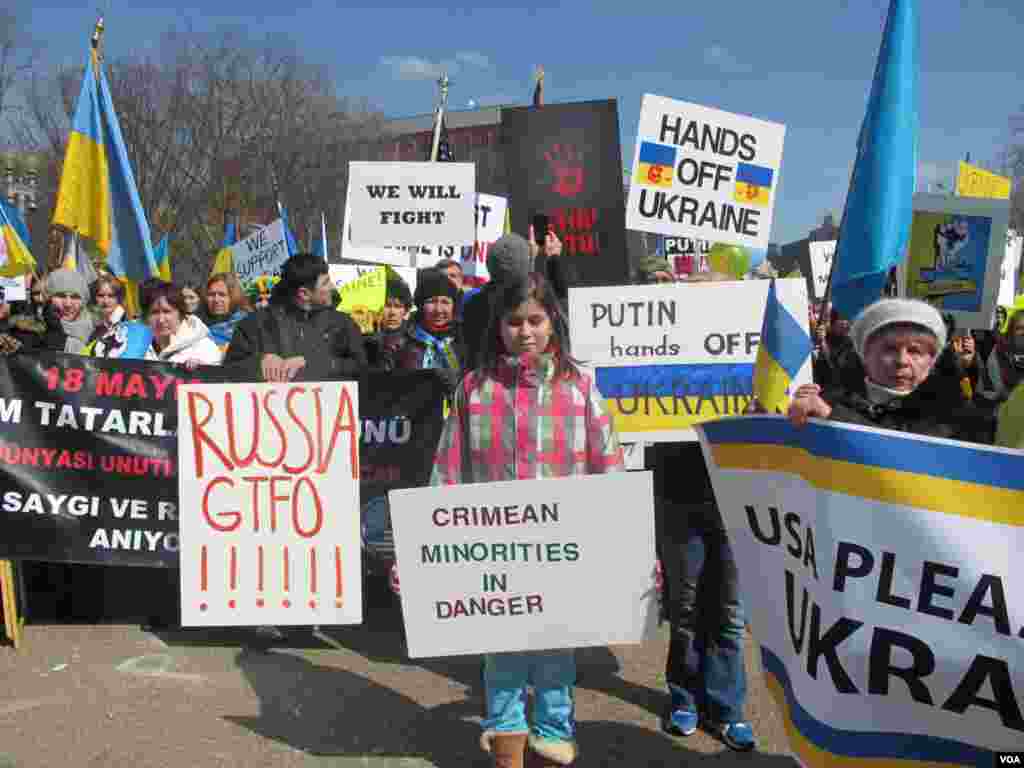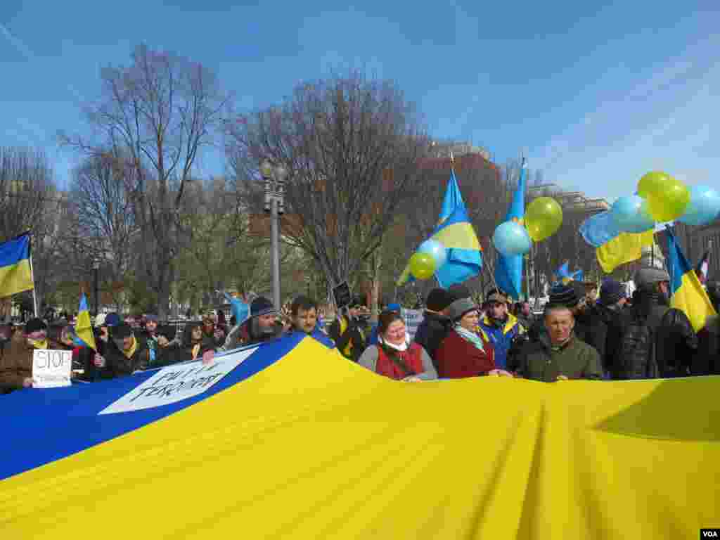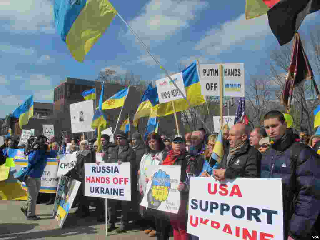 У четвер перед Білим домом у Вашингтоні відбувся масовий протест проти військового втручання Росії.