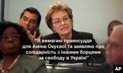 Зокрема, виступаючи в Конгресі в листопаді 2017 року, Каптур присвятила свою промову "жертвам вбивств, пов’язаних з Кремлем" в Україні і вшанувала пам’ять Аміни Окуєвої.
