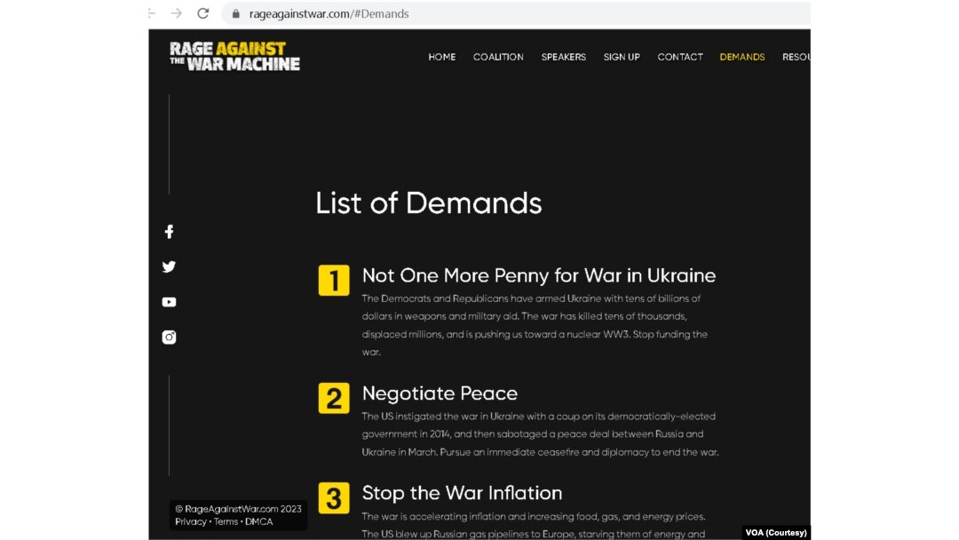 Рух за Народну партію був одним з організаторів згаданого проросійського мітингу у Вашингтоні біля меморіалу Лінкольна. Крім того, серед організаторів - особи, які працюють на російські державні ЗМІ, - пише розслідувальник “Поліграфу”. Він також підкреслює, що мітингувальники назвали свій протест «Гнів проти військової машини», але звинуватили в агресії Росії в Україні Захід.